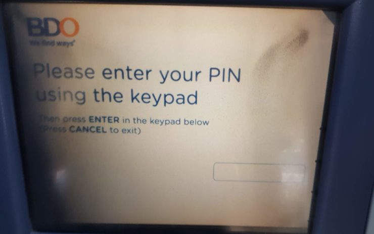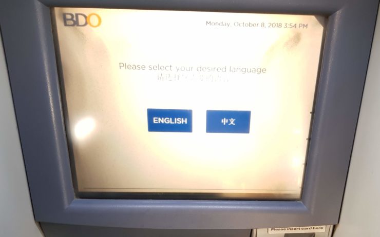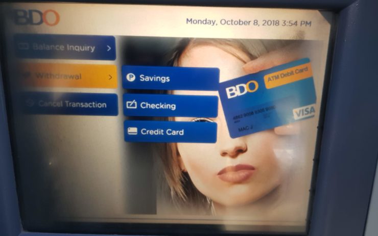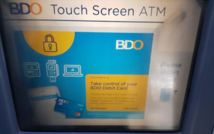 今回は、BDOという銀行のATMを使って説明していきますが、その他の銀行ATMでも基本的な流れは同じです。